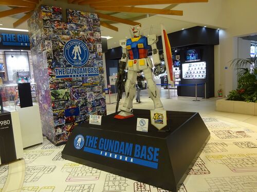 こんばんは♪皆さん♪ ガンダムベース福岡店の更新も3回目となり この更新をもって完結します。 まずは店頭にあるRX-78-2ガンダム の巨大オブジェから・・・ この周辺は広場になっていますよ♪ 同じく店頭の柱です。 店のロゴと共に多くのガンプラのBOXアート…
